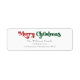 Celebrate the season with this unique, classic simple Merry Christmas return address label featuring a touch of vintage charm. The minimalist design showcases an elegant red and green colour palette, evoking the cosy spirit of winter. Its modern and fun appeal, paired with the traditional wording, creates a perfect balance between boldness and classiness. The cute and playful typography, in a fancy and minimalistic lettering style, adds a touch of contemporary flair. Share the joy and happiness of the holidays with this happy and stylish greeting!