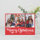 Classic Simple Red Merry Christmas Three Photo Holiday Card