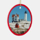 Classic Snow Covered Nubble Lighthouse Ceramic Ornament. Create a Family Keepsake with this Snow Covered Image of Nubble Light. The Red outline gives this Vintage style design a trendy pop of colour. Available in Hot Pink too.