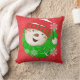 Classic Snowmen holiday pillow, so pretty and colourful, features a red with white small polka dots background with a green circle with white dots and each side has a smiling snowman with a hat, scarf, carrot nose, and snowflakes!