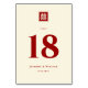 Classic Red Square Double Happiness On A Cream/Ivory/Beige Background, Double Sided Chinese Wedding Table Number Card.