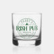 This classic whiskey glass features a traditional Irish Pub sign that says "Paddy's IRISH PUB Whiskey And Ale" in a decorative green circular script. Perfect for the St Patrick's Day season.