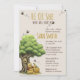 "Celebrate your little honey's arrival with an invitation full of timeless, storybook charm. This whimsical baby shower invitation features a beloved classic bear sitting happily under a grand oak tree with a sweet pot of honey. Playful bumblebees buzz around the 'He or She' announcement, making this the perfect design for a magical gender reveal party.