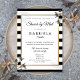 With a classic black and white stripe background, this elegant bridal shower by mail long-distance invitation features an elegant faux gold foil border framing your bridal shower details set in chic typography. Designed by Thisisnotme©