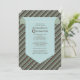 A bold, blue-green and brown stripe is the backdrop for a handsome panel that holds your personalisation. A trendy invitation that's perfect for your confirmation celebration. (FP)