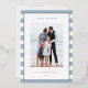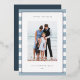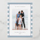 Share holiday greetings with these Hanukkah photo cards featuring your favourite photo set on a background of pale blue and white stripes with luxe silver foil trim. An editable message area lets you customise your Chanukah or holiday greeting. Add your family name or names beneath along with the year.