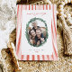 Celebrate the season with our family photo holiday card featuring classic stripes and a pine sprig wreath adorned with beautiful script lettering - the perfect way to share a greeting with your family and friends this holiday!