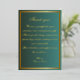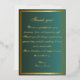 Say thank you with elegance and style using this teal and gold wedding thank you card. The rich emerald-teal background is beautifully complemented by double gold borders and sophisticated golden script.