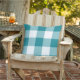 A classic teal and white outdoor pillow with a large-scale gingham check pattern. The oversized teal check brings a coastal, sophisticated accent to patio furniture, porch seating, or deck chairs. A rich pattern that coordinates beautifully with nautical and tropical outdoor styling.