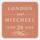 Add a warm finishing touch to your wedding favours with this classic terracotta monogram square sticker. The couple's names and wedding date are displayed in refined white typography with decorative scroll accents against a rich terracotta background. Ideal for favour bags, gift boxes, wine bottles, or envelope seals. All text is fully customisable. Coordinates with the Classic Elegant Terracotta wedding suite.