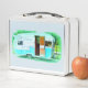 This is a standard metal lunchbox that appears to work just fine. We designed this box ourselves with an uploaded photo and custom text on the front and back. It looks absolutely beautiful except the front of the lunchbox is not centered like it shows in the photo. The print borders don't align with the inset flat part of the box where the preview photo online showed it perfectly centered in there. The back looks nice and centered though.