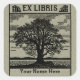 Classic Tree with Books Ex Libris Bookplate- Green Square Sticker