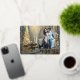 This holiday card is both unique and classic, showcasing a trendy decorative design. It features a charming seasonal message that says, "Wishing you a Magical Holiday." The card also allows for customisation with your choice of a photo and family name. The design includes an elegant, Gustav Klimt-inspired abstract winter wonderland scene in a vibrant, colourful palette. Additionally, the back of the card offers a customisable seasonal greeting poem.