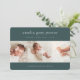 Elegant and classic birth announcement features three photos aligned side by side on a gender neutral forest green background. Personalise with baby's name, birth stats, and your family signature in crisp white lettering.