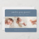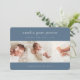 Elegant and classic birth announcement features three photos aligned side by side on a dusty blue background. Personalise with baby's name, birth stats, and your family signature in crisp white lettering.