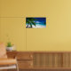 Take a trip to paradise with this awesome classic tropical scenic photo poster! This remarkable photo has all the makings of a tropical paradise. From lush green palms, tropical islands, clear, fresh and shimmering tropical turquoise sea water, soft white sandy beaches on a bright, warm, and sunny day under a blue sky. I could imagine relaxing on this beach with a cold drink in hand, feeling a gentle warm breeze, hearing the splash of sea waves against the shore and letting all my worries fade away. What will you imagine with this tropical photo poster?
