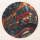 A classic fire truck roars through vivid flames, its bright headlights glowing against the rich texture of imitation leather. Bold colours and dynamic movement bring this intricate design to life, celebrating bravery, nostalgia, and timeless service in a stunning visual tribute to firefighting heroes.