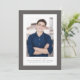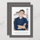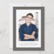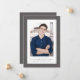 This simple and sophisticated graduation announcement and invitation features one vertical photo on the front surrounded by a slate grey frame with a herringbone tweed effect. The fabric look (please note it's not real fabric) gives it a classic academic style and the simple type is the perfect personalised touch. The back of the card is a matching grey pattern with room for a second photo and graduation party details - or they can be left blank. This original grad card by Lea Delaveris Design is also available as a digital graduation announcement and invitation download and can be found in a variety of colours in the herringbone tweed grad collection.