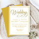 Golden on white - a formal, classic and elegant Wedding invitation with beautiful script and calligraphy. The Script "Wedding" has a dark shadow to highlight Wedding. Together with their parents the couple invites to a Wedding celebration to remember. The front with a double frame around the text makes it formal and sharp. The back of this invitation is in solid Golden.