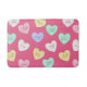 This cute bath mat features a Valentine's Day theme. The background is a bright pink with classic Valentine heart candy. The colourful candies feature various sayings.