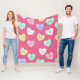 This cute blanket features a Valentine's Day theme. The background is a bright pink with classic Valentine heart candy. The colourful candies feature various sayings.