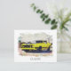 POST CARD POSTCARD - CLASSIC CARS RETRO - Grunge style Digital Enhanced Paintings - PERSONALIZE TEXT IF DESIRED. - YELLOW Muscle Car.