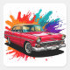 A beautifully restored vintage car graces a dynamic, vibrant splatter art background, exuding retro automotive charm and artistic flair. Perfect for depicting nostalgia, creativity, and classic elegance in visual compositions.