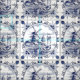 Classic Vintage Chic Dutch Windmill Delft Blue Fabric