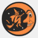 Classic Vintage Halloween Moon and Witch Round Sticker