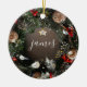This is a modern take on an old classic Christmas Holiday Door Wreath transformed into Classic Vintage | Name | Year | Christmas Wreath Ceramic Ornament.