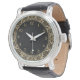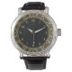 A classic vintage-inspired watch featuring an ornamental dial design with a timeless analog look. Paired with a black leather strap, this elegant wristwatch complements formal outfits and everyday wear with refined, traditional style.