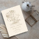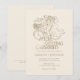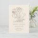 The invitation features a ivory backdrop, allowing the intricate details to truly shine. The classic and floral typography, rendered in the subtle and sophisticated hue of vintage gold, evokes a sense of vintage grace and natural beauty. Adding a delightful and unexpected element is a charming handdrawn wedding couple over a bicycle, radiating a feeling of joy and lightheartedness as they embark on their new journey together. This illustration injects a touch of rustic sweetness into the overall classic design.