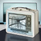 A retro style lunch box featuring a vintage tv design with modern movie graphics. Great for anyone who loves movies.