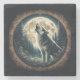 Classic, vintage wolf & moon stone coaster