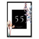 Classic Watercolor Blue Leaves Black Wedding Table Number