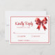 Ideal for red and white wedding themes, romantic ceremonies, and formal celebrations, this RSVP card seamlessly complements a variety of wedding styles. The graceful red bow design enhances your wedding suite, creating a cohesive and polished look that reflects your attention to detail.