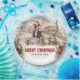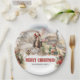 A truly western adventure design for Christmas plates features watercolor illustration at Santa riding a horse with cowboy boots and race with red Christmas train in the prairie and decorated with prairie grass and red pinsettia. Easily personalise the text or leave it blank.