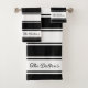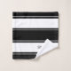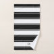 Minimalistic and chic bathroom towel set. This design features a modern black and white striped theme with your personalized text included on the lower right hand corner of each item. This beautiful set includes a wash cloth, hand towel, and bath towel which can be purchased together or separately. This towel set would make a great gift for a bridal shower, a birthday or for a housewarming party.