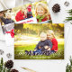 Showcase a favorite photo with flowing white “merry christmas” calligraphy for a timeless, elegant look. Add your family name and year for a clean, finished feel. The back features a cheerful multi-photo collage with a “Warmest Wishes” message panel, perfect for sharing extra moments. A classic design that feels warm and bright.