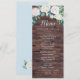 This classic white flowers rustic wedding dinner menu card is perfect for a fall wedding. The elegant floral design features soft ivory and white roses, peonies, and chrysanthemum with touches of periwinkle blue watercolor flowers and green foliage on a faux brown wood background. This menu can be used for a wedding reception, rehearsal dinner, or any event.