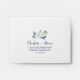 These classic white flowers self-addressed RSVP envelopes are perfect for a spring wedding. The elegant floral design features soft ivory and white roses and peonies with touches of periwinkle blue watercolor flowers and green foliage. Personalise with the name of the bride and groom and RSVP address.
