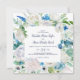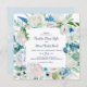 This classic white flowers square wedding invitation is perfect for a spring wedding. The elegant floral design features ivory and white rose, peony, and chrysanthemum with touches of periwinkle blue watercolor flowers and green foliage.