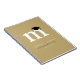 This classic and simple graduation design features a bold white monogram letter 'M' of the graduate with a black mortarboard / graduation cap as an accent on a plain gold background.