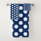 Classic White Polka Dots on Navy Blue Bath Towel Set