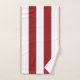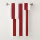 This bath towel set features a classic pattern of wide stripes in red and white for a minimalist look