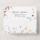 This classic wild colourful floral wedding all in one invitation is perfect for a tropical wedding. The design features pink, purple, yellow, burgundy, navy and blue hand-drawn wild flowers, arranged in beautiful shapes.