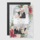 This classic and traditional design features two photo templates with centre blank element for your personalisation on a background of watercolor style poinsettias, white roses and pine on a misty grey background.