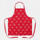 Chic winter or Christmas apron design features white snowflakes on red pattern. Several different snowflake patterns make it interesting visually.