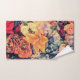 Beautiful hand towel featuring rustic feel autumn flowers print.  Artwork created digitally to show a mosaic effect.  Includes flowers in a mix of colors including burnt orange, red, purple, blue and green.