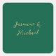 Classical Calligraphy Couple Names Green & Gold Square Sticker